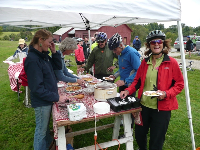Riders will choose from routes of 10, 25 and 30 miles, all of which will pass a variety of family farms offering riders samples of their finest food and drink. Previous years’ samples have included quiche, salads, wine, turkey, yogurt, cookies, apple cider, and much more. Thanks to a new partnership with the Vermont Fresh Network, 2011 cyclists can expect to see a few local chefs cooking up samples that will feature additional Addison County producers. And for those cyclists on the 30-mile route who are hungry for lunch, the Northeast Organic Farming Association will be selling pizza cooked on-site in a brick oven at the Orwell Green!